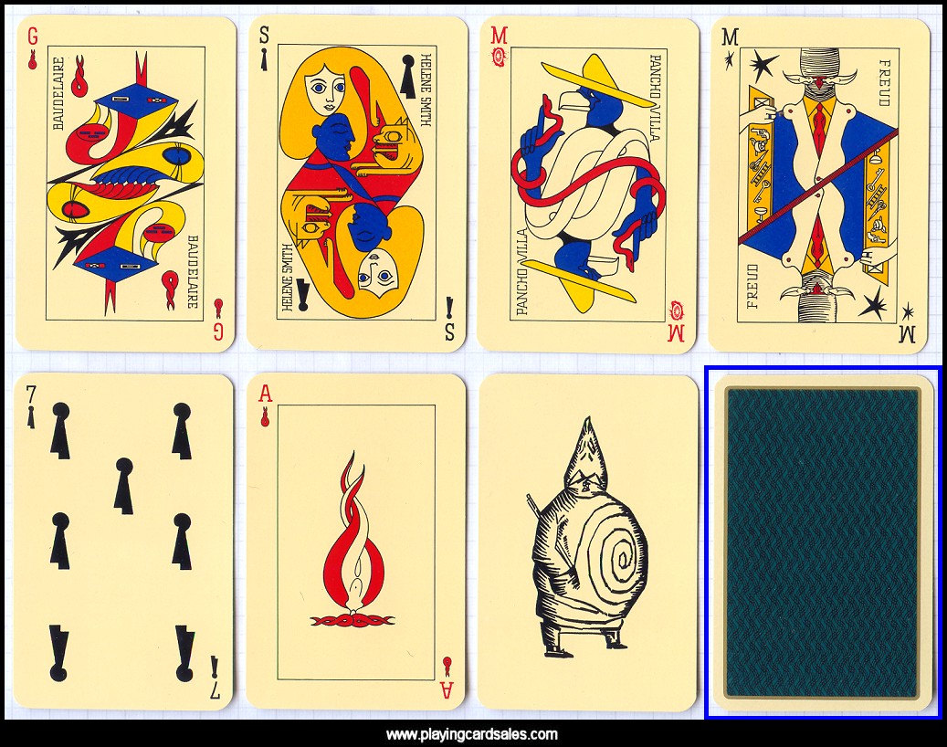 Collective effort by 8 Surrealist artists including Max Ernst, André Breton and André Masson. Suits are flames, stars, wheels and locks. Original designs date from c1940. Cello-wrapped only.